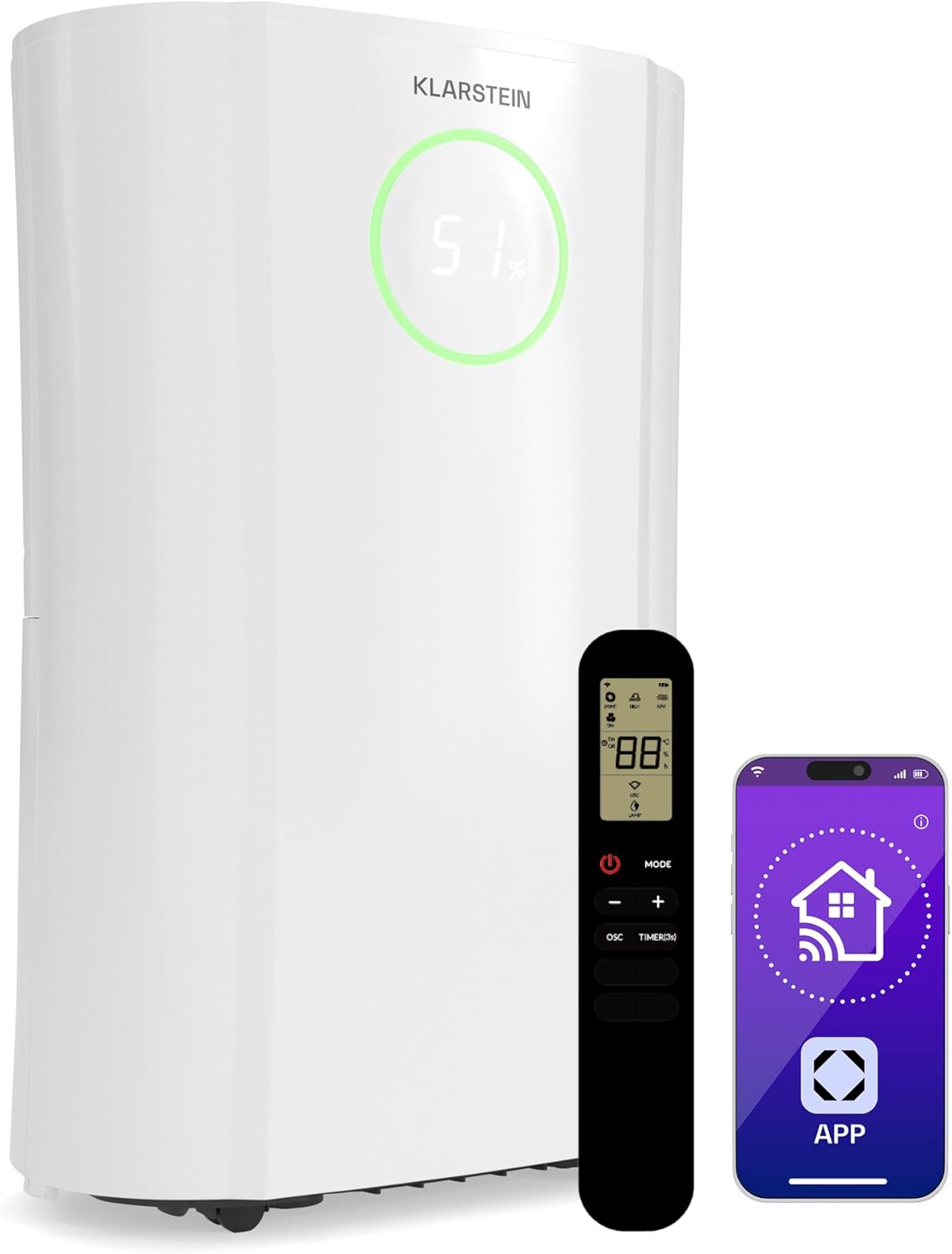 KLARSTEIN DryFy ProConnect Deumidificatore WiFi 24L/24h con Filtro HEPA, Timer 24h, Serbatoio 4L, per Ambienti fino a 36 m²