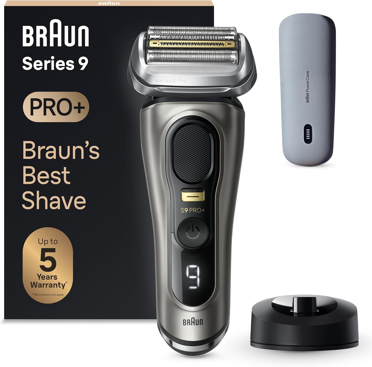 Braun Series 9 PRO+ 9597cc Rasoio Elettrico Uomo Wet & Dry con Rifinitore di Precisione, Lame Flessibili, Stazione SmartCare, Batteria Li-Ion 60 Minuti, Custodia da Viaggio, Argento