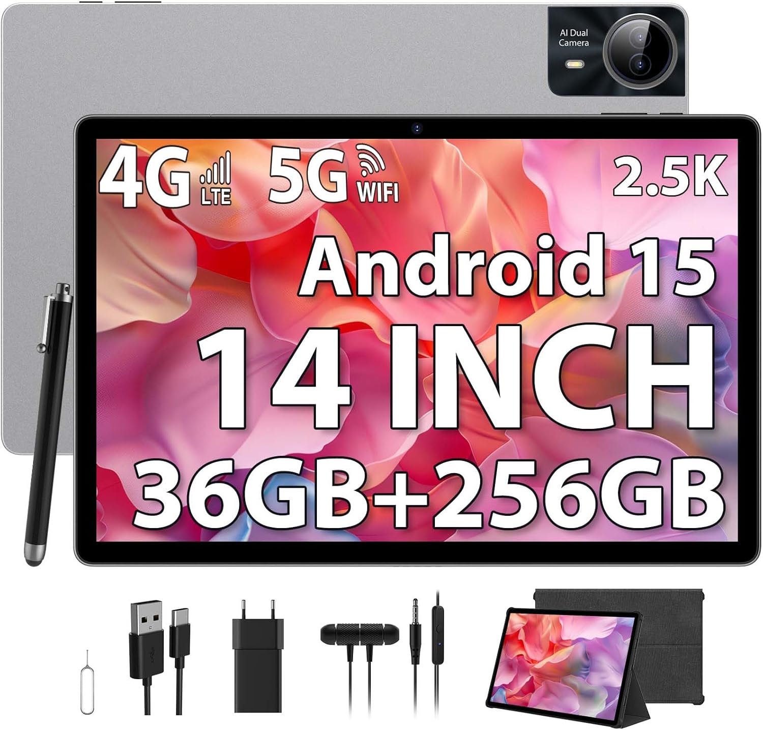 Tablet Android 15 14" 2.5K 36GB RAM 256GB ROM 4G LTE Dual SIM WiFi 5G Octa-Core 11580mAh Argento (M708-EEA, 2025)