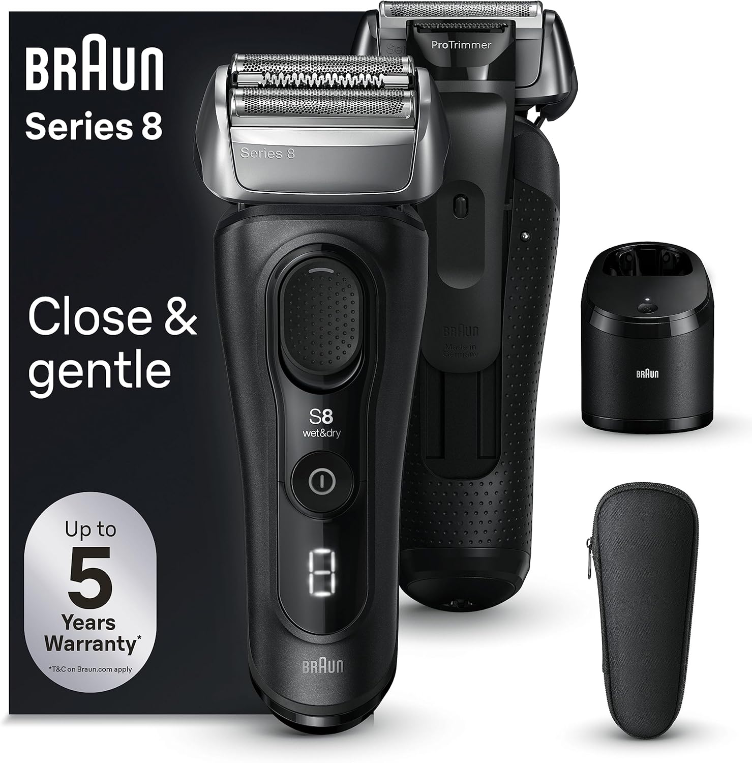 Il rasoio elettrico Braun Series 8 8560cc è progettato per offrire una rasatura precisa e confortevole per la cura quotidiana di barba e viso. Grazie alla tecnologia avanzata Braun e al design ergonomico, il rasoio contribuisce a ottenere risultati uniformi mantenendo il comfort della pelle.