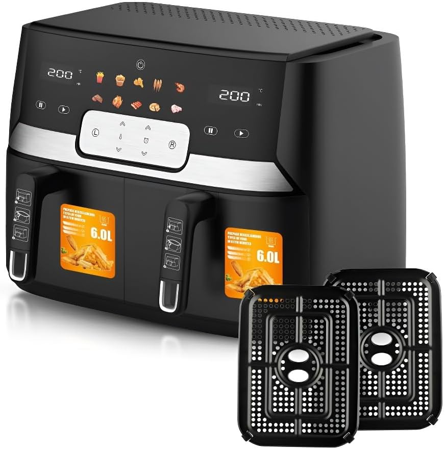 La grande capacità e il design a doppio cestello rendono la friggitrice ad aria adatta alla preparazione di pasti per tutta la famiglia.