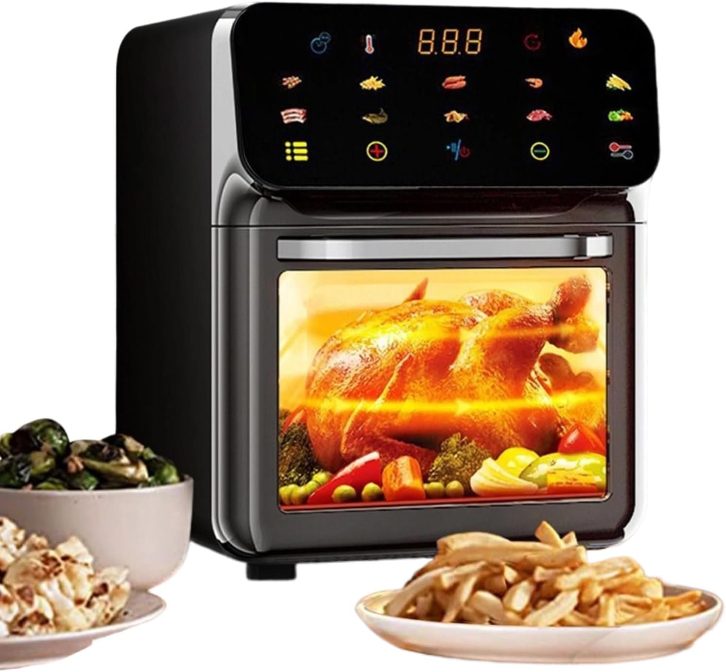 La friggitrice ad aria forno da cucina con capacità di 15 litri è progettata per offrire diverse modalità di cottura in un unico elettrodomestico. Il design compatto con ampia finestra frontale consente di controllare facilmente la preparazione degli alimenti durante la cottura.