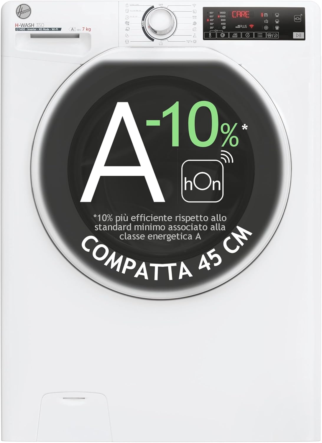Hoover H-WASH 350 H3WP4474TAM6/1-S lavatrice slim a carica frontale progettata per offrire prestazioni efficienti e dimensioni compatte per spazi domestici ridotti.