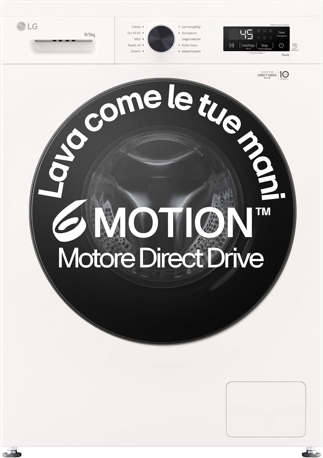 Capacità di lavaggio fino a 9 kg e capacità di asciugatura fino a 5 kg progettate per soddisfare le esigenze di lavaggio e asciugatura quotidiane.