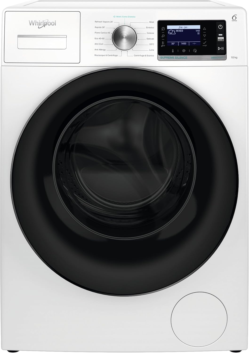 Lavatrice Whirlpool modello W6 08 SILENCE IT a carica frontale e libera installazione, progettata per offrire prestazioni efficienti e funzionamento silenzioso negli ambienti domestici.
